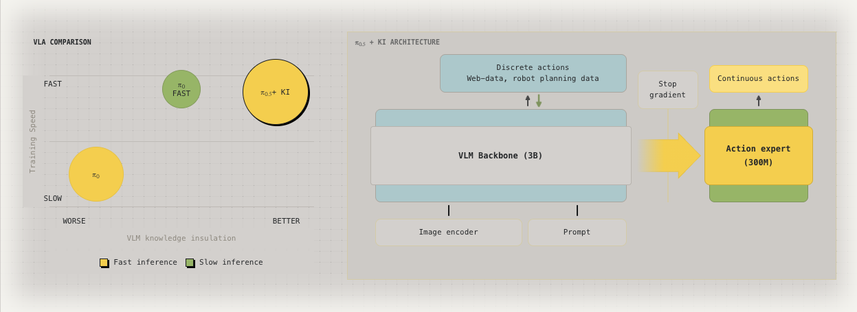 This paper basically eliminate that two stage training in Pi 0.5. Remember we need to add action expert / switch loss target in the training process? With this thing you don’t need to do that anymore.