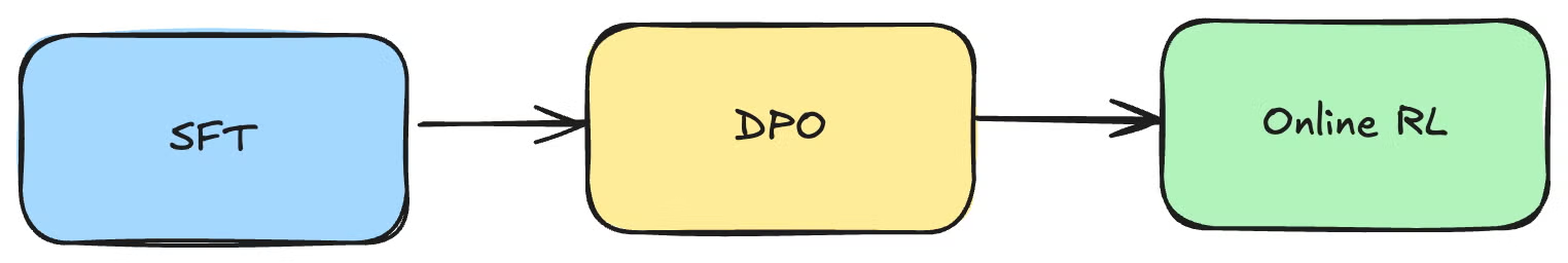 Finally we can do online RL, which nowadays is often tied to PPO.