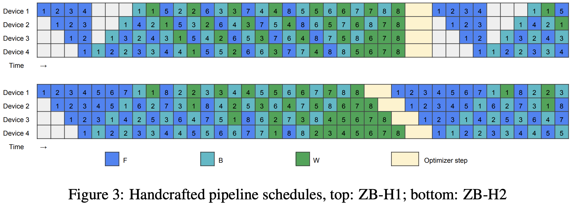 We can do better things, like using “Zero bubble” pipelining, from a 2024 ICLR paper, using the fact that the backward gradient calculation of loss w.r.t. to weight does not have dependencies and can be done whenever. So we can first compute gradient for first, then .
