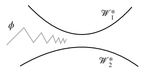 The two black lines represent the sets of optimal weights for two different tasks, while the gray line represents the initialization weights. Reptile tries to get the initialization weights closer and closer to the point where the optimal weights are nearest to each other.