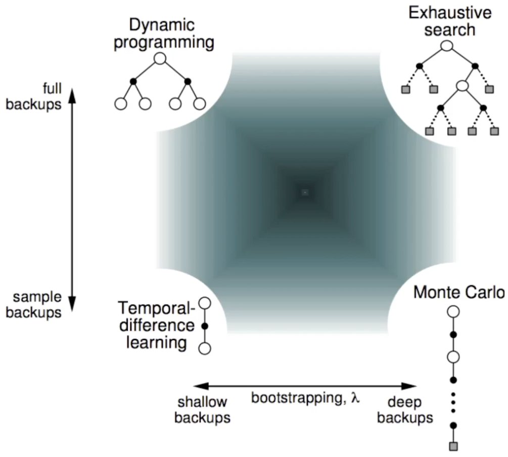 between dynamic programming, Monte Carlo and Temporal difference.